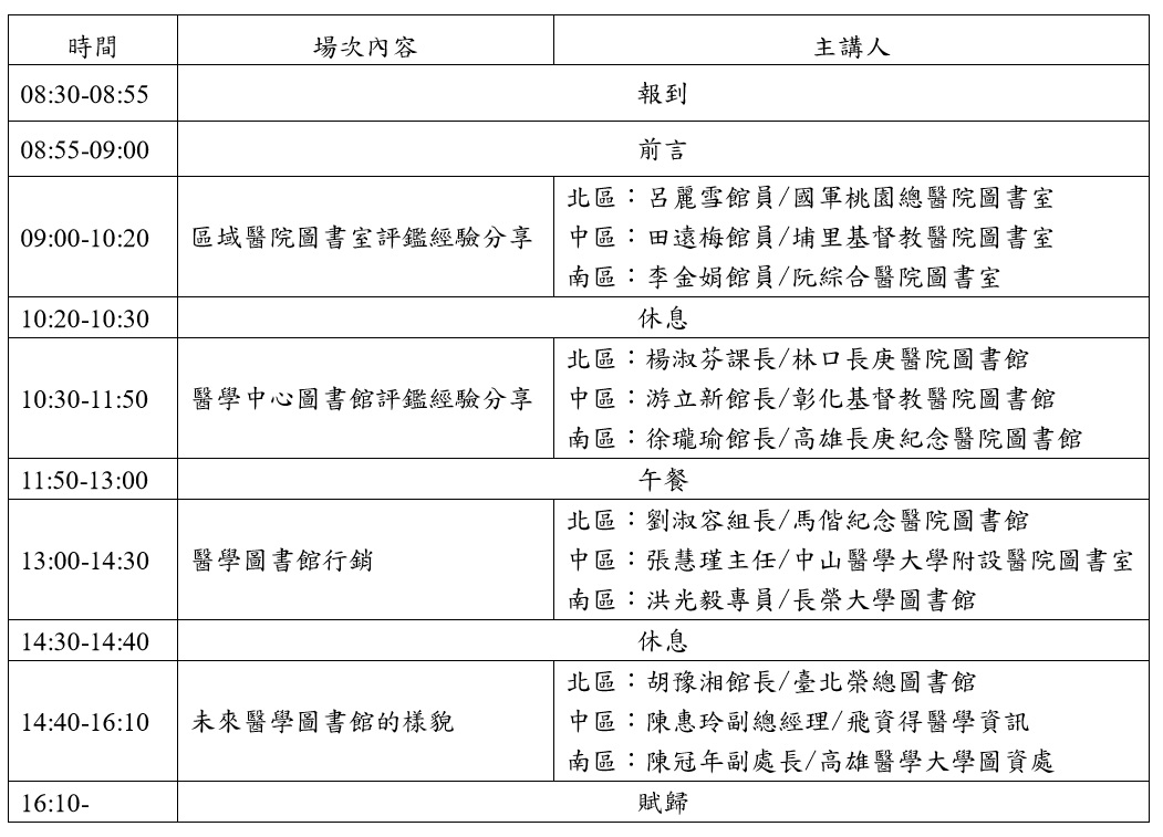主辦單位:臺灣醫學圖書館學會教育委員會